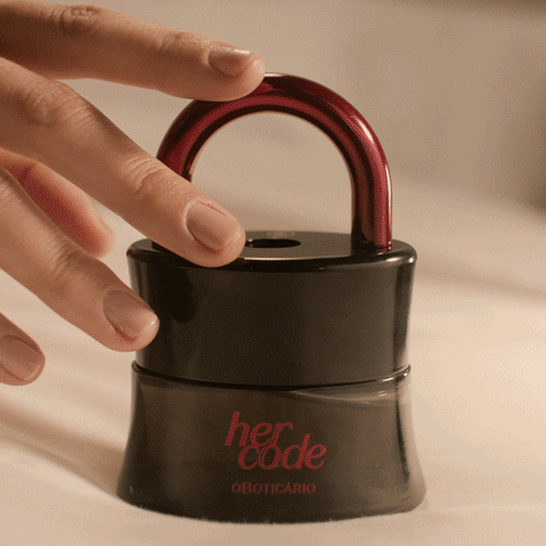 O frasco, em formato de cadeado, liberta o seu desejo e toda a sua sensualidade, com o ar do mistério e os códigos de sofisticação da linha.